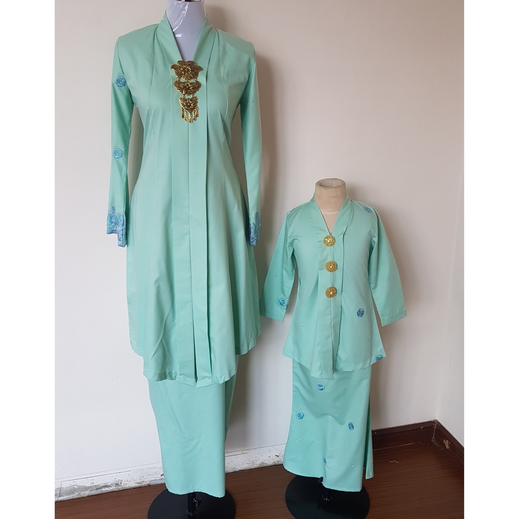 Kebaya Moden Hijau Muda Turquoise Ladies Wanita Baju Raya Family Sedondon Mayor Manik Shopee Malaysia